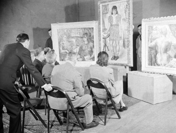 Judges examine paintings in New York, April 1940. Hansel Meith, photographer. Copyright Time Inc.