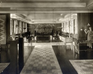 The first exhibition held at Kingswood School in what is now the weaving studio. Primarily designs for Kingswood School, but includes costume designs by Pipsan Saarinen Swanson. Photographer, George W. Hance, 1932